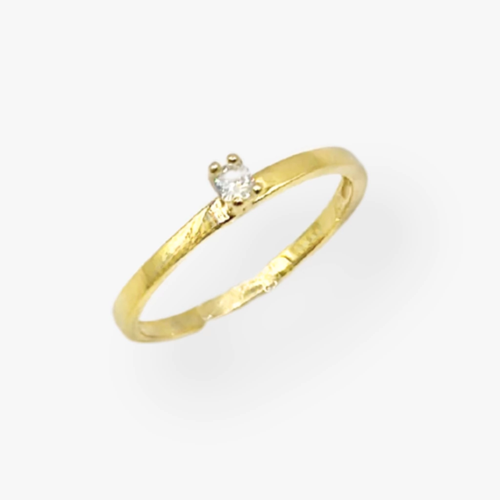 Anel Solitário Mini - Anel solitário com aro liso e zircônia pequena central. Design clássico, super delicado e elegante! Fica lindo quando usado com aparador ou aliança. Pode ser usado em diversas ocasiões!