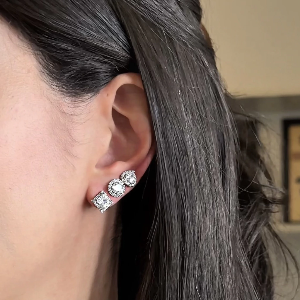 Brinco Alexis - Brinco em formato quadrado com zircônia central e cravação em micro Zircônias em torno. Design clássico e sofisticado! Pode ser usado em diversas ocasiões e em combinação com outros brincos.
