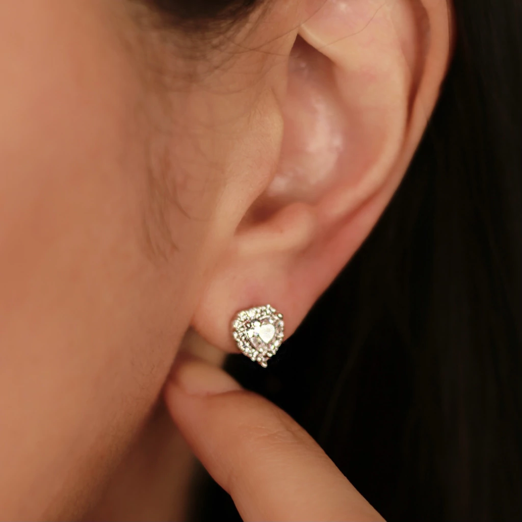 Brinco Lauren - Brinco em formato de coração com zircônia central e cravação em micro zircônias em torno. Design clássico e sofisticado! Pode ser usado em diversas ocasiões e em combinação com outros brincos.